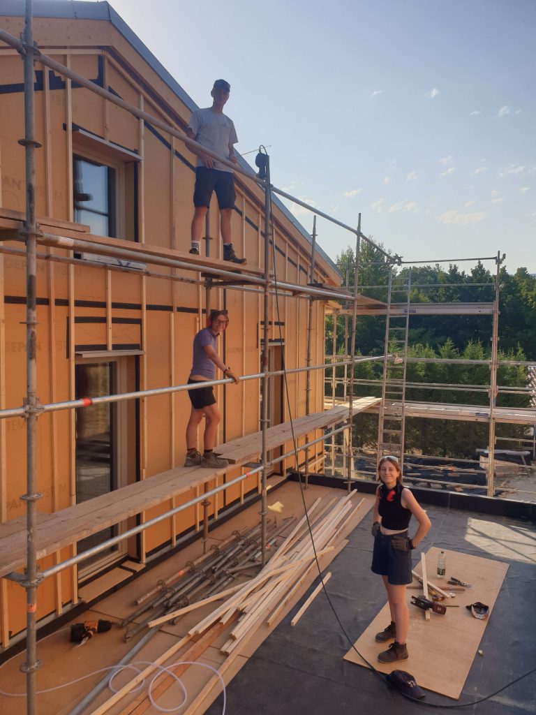 le 25 novembre, la dernière lame de bardage de la salle commune est posée !