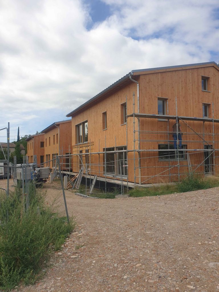 1er Août : le bâtiment A est hors d’eau => on démarre le bardage sur ce bâtiment