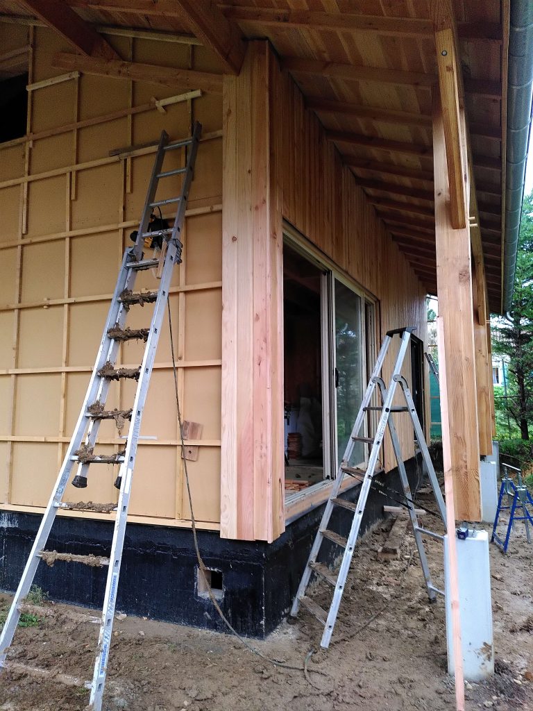 Petite réflexion en conduisant : Quand on arrive à une difficulté dans le bardage (fenêtre ou porte) il vaudrait mieux mesurer, couper et poser une pièce à la fois. Prendre les mesures de toutes les pièces ensemble conduit à des confusions et des erreurs.
